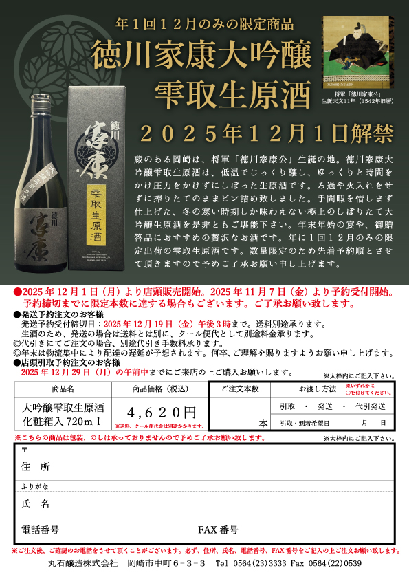 【徳川家康大吟醸 雫取生原酒】2025年12月1日解禁
